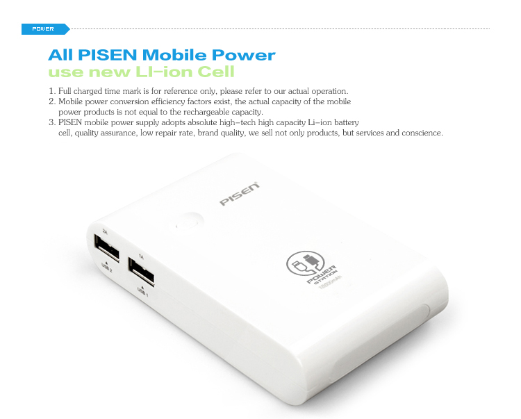 PISEN แบตสำรองแท้ 10,000 mAh พาวเวอร์แบงค์ Power Station รุ่น TS-D043 Dual USB คู่ 5V-2A ชาร์จเร็ว เก็บประจุเต็มที่ได้ยาวนาน มากกว่า 1,000 ครั้ง พกพาสะดวก ฟรี!! สาย Micro USB - สีขาว