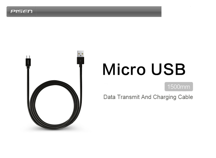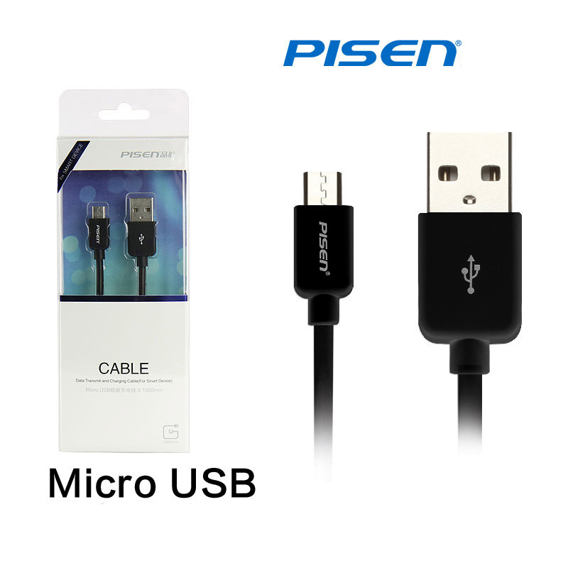 PISEN Micro USB สายชาร์จ & ส่งข้อมูล Data Transmit and Charging Cable 2-in-1 USB 2.0 ความยาว 1500 mm ชาร์จไฟไว - สีดำ