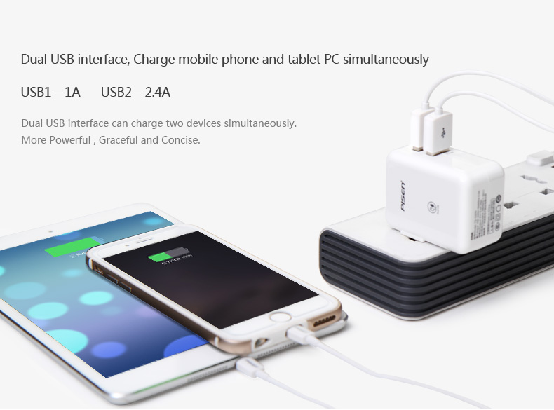 1.PISEN อะแดปเตอร์ชาร์จไฟ Dual USB iPad Charger x 1