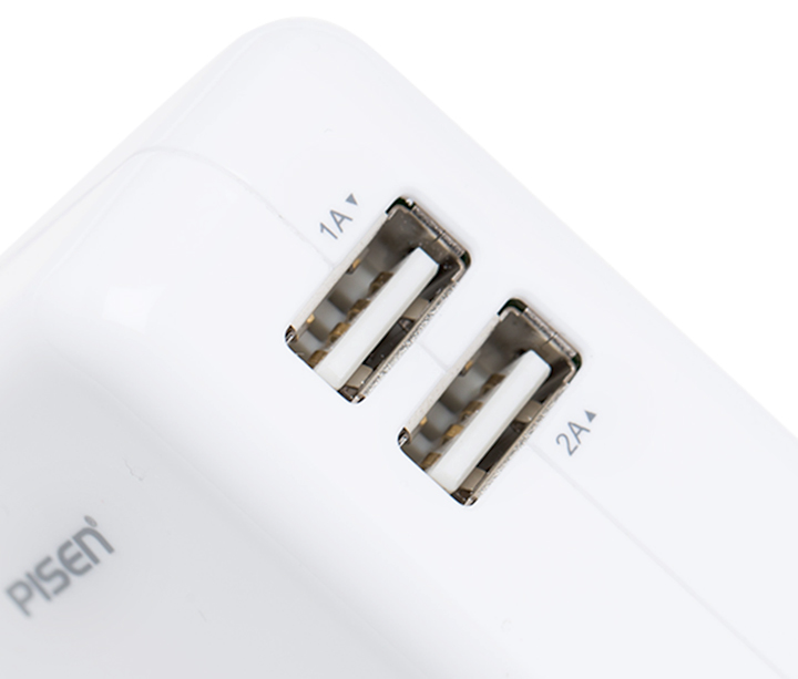 PISEN อะแดปเตอร์ชาร์จไฟ Dual USB iPad Charger 5V-2A มี 2 พอร์ต ต่อเข้ากับไฟบ้าน 100-240V ปลั๊กไฟบิวอิน Built-in ในตัว สะดวกสบายเสียบได้ทันที ชาร์จเร็ว ไม่เปลืองไฟ ปลอดภัย ไม่ร้อน - สีขาว