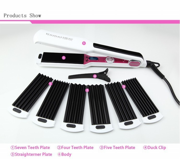 4.รูปแบบแผ่นหนีบหยัก 3 แบบ สำหรับการเพิ่มประสิทธิภาพในการออกแบบทรงผมและการจัดแต่งทรงผมจุดทั้งหมดใช้ในส่วนที่เป็นฐานเพื่อสร้างความสมบูรณ์แบบมากยิ่งขึ้น