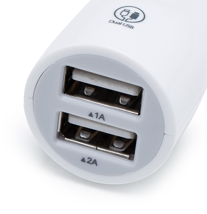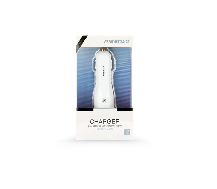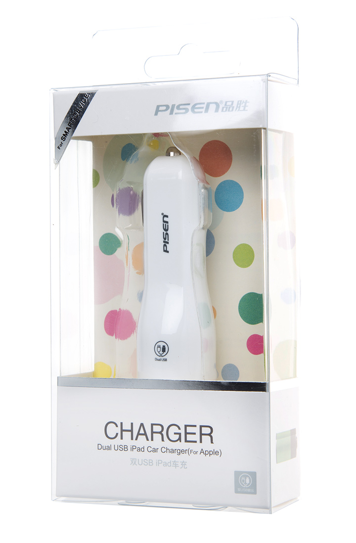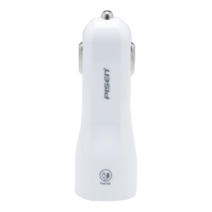PISEN อะแดปเตอร์คู่ชาร์จไฟในรถยนต์ Dual USB iPad Car Charger 2A USB 5 โวลล์ ขาล็อคแบบสปริง โทรศัพท์ได้แม้เสียบชาร์จไฟอยู่ สะดวกสบายเสียบได้ทันที ชาร์จเร็ว ไม่เปลืองไฟ ปลอดภัย ไม่ร้อน - สีขาว