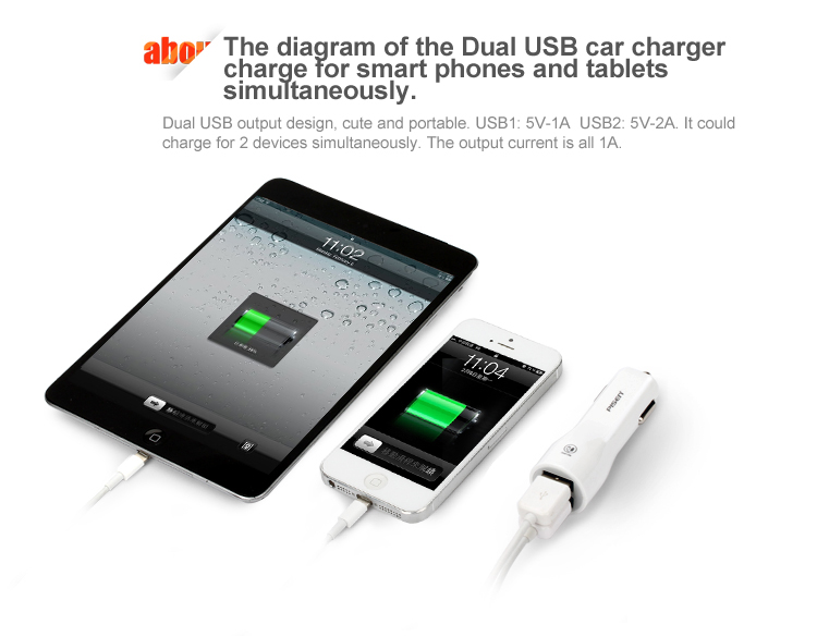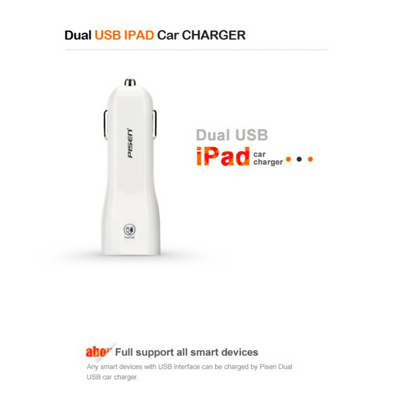 1.PISEN อะแดปเตอร์ชาร์จไฟในรถยนต์ Dual USB iPad Car Charger USB 5V-2A x 1