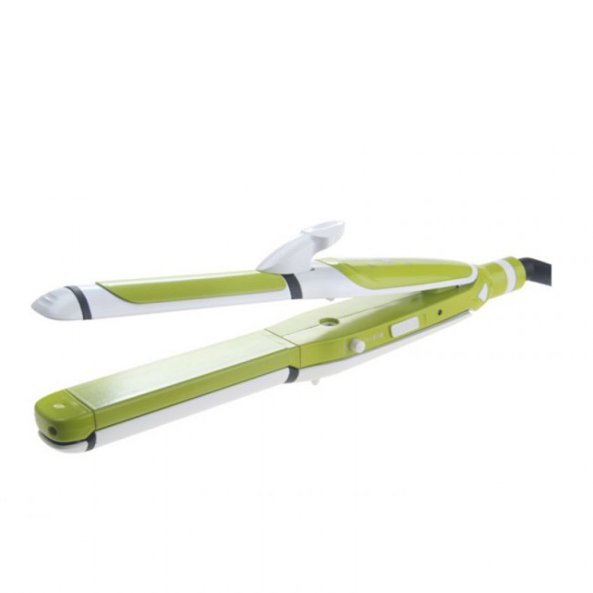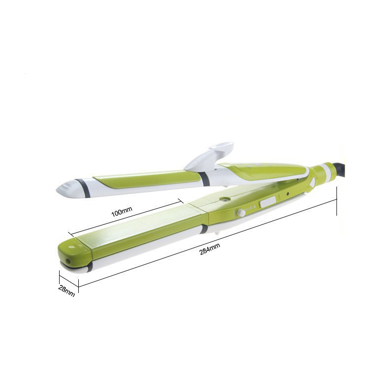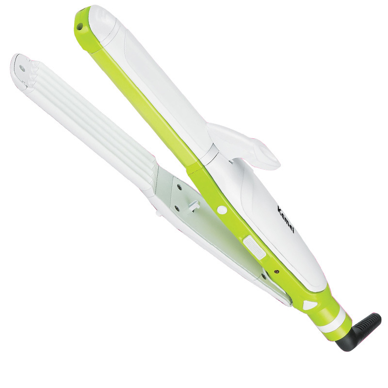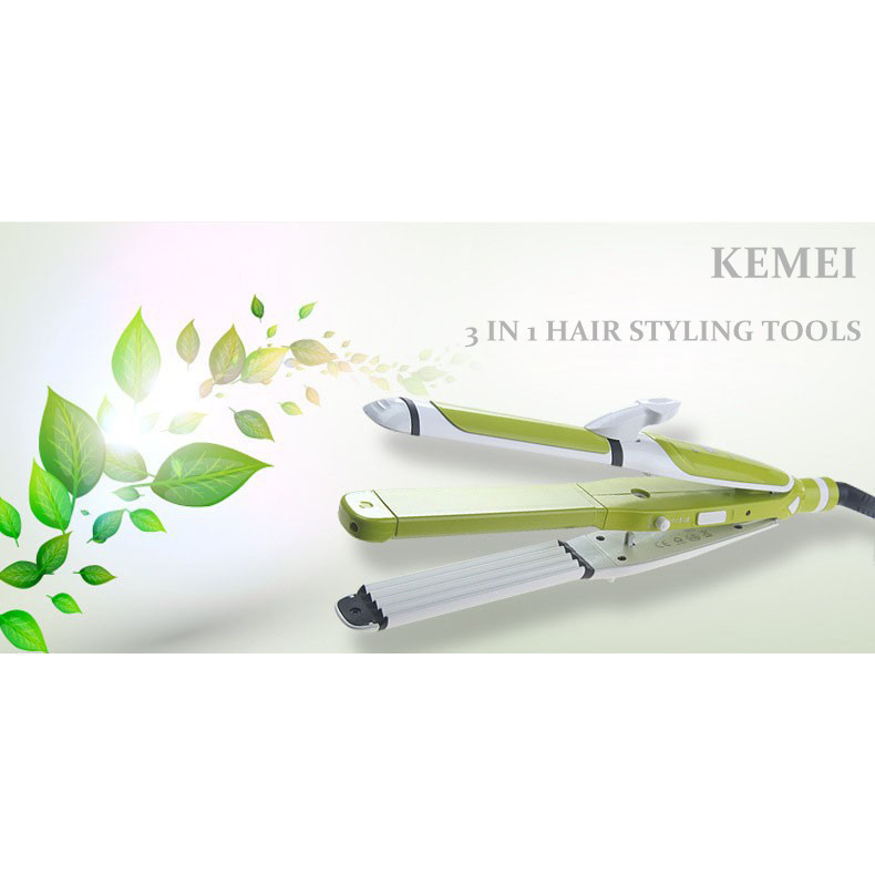 Kemei เครื่องหนีบผมม้วนผม 3 in 1 หนีบผมตรง หยัก และม้วน ปรับ 3 ระดับ แผ่นความร้อนอะลูมิเนียม 200C 60W รุ่น KM-2208 - สีเขียว