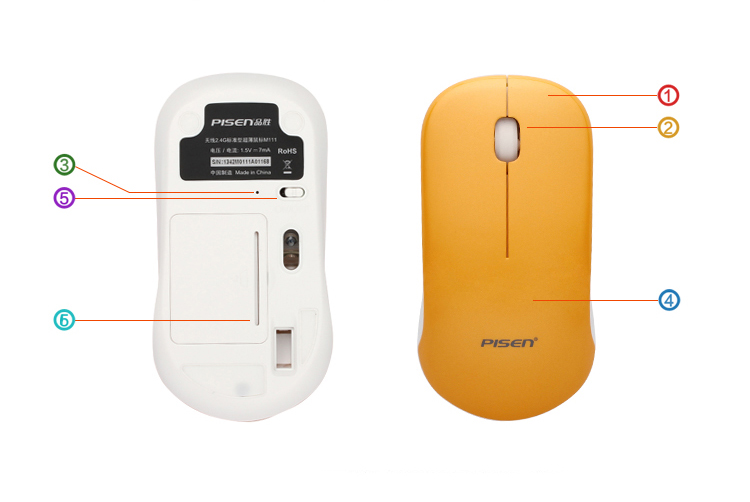 PISEN เม้าส์ไร้สาย 2.4G กระจายสัญญาณ 10 เมตร รุ่น M111 รองรับ Windows และ OS ความถี่อัจฉริยะ FHSS ป้องกันการรบกวน 3 มิติ แนว 360 องศา ตัวรับ NANO ระบบ Plug&Play สามารถใช้ถ่านก้อนเดียวได้ – สีเหลือง