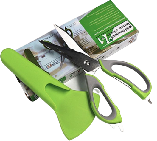 ใหม่!! กรรไกรเนอกประสงค์ 7 in 1 ที่ใช้งานได้ 7 แบบ ในอันเดียว ด้วยการ 1.ใช้สไลด์เนื้อปลา 2.หั่นผักผลไม้ 3.บีบถั่วหรือก้ามปู 4.เปิดประป๋อง 5.ตัดเนื้อสัตว์ 6.ปอกเปลือก 7.เปิดฝาขวด มาพร้อมด้ามจับกันลื่นวัสดุเกรดเอเทอร์โมรับเบอร์ จับได้ถนัด กระชับมือ ใช้งานง่าย สะดวกสบาย แข็งแรง ทนทาน ใช้งานยาวนาน ด้วยฟั้งก์ชั่นทีหลากหลายในตัว ประหยัดเงินที่ต้องซื้ออุปกรณ์หลายชิ้น การจัดเก็บที่ยุ่งยากและสิ้นเปลือง เหมาะสำหรับแม่บ้านยุดใหม่ที่มีความเร่งรีบ และเวลาน้อย สามารถทำอาหารให้คุณพ่อบ้านและลูกๆได้อย่างรวดเร็ว หรือผู้ที่ชอบการทำอาหารก็ได้ใช้อุปกรณ์คุณภาพระดับเชฟมืออาชีพ