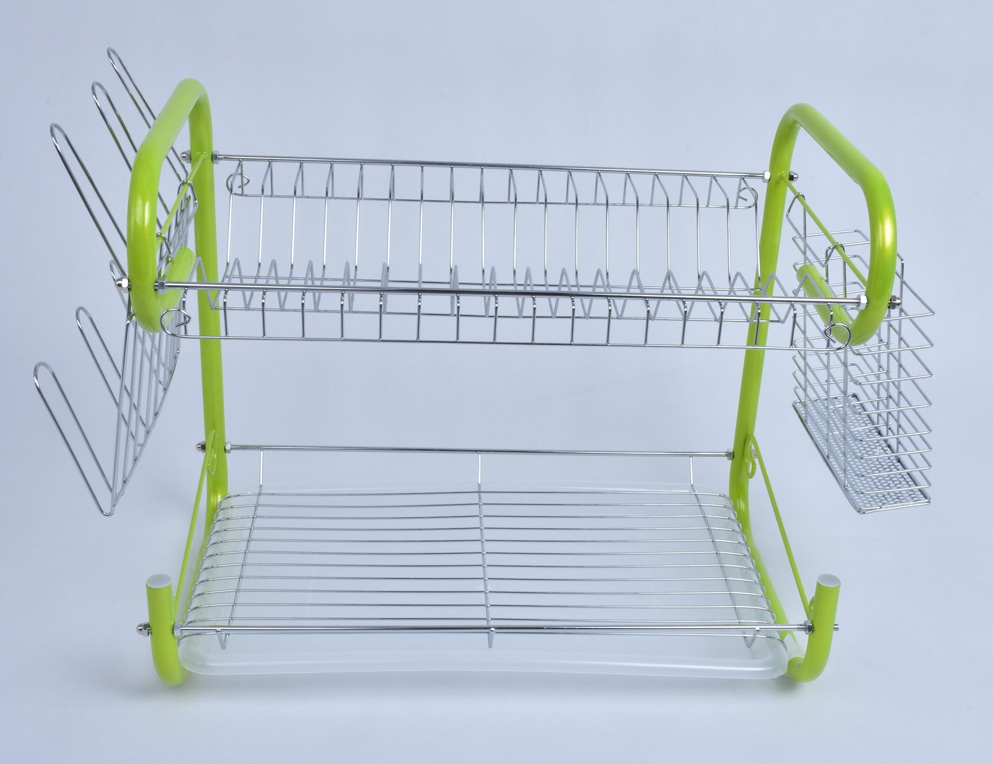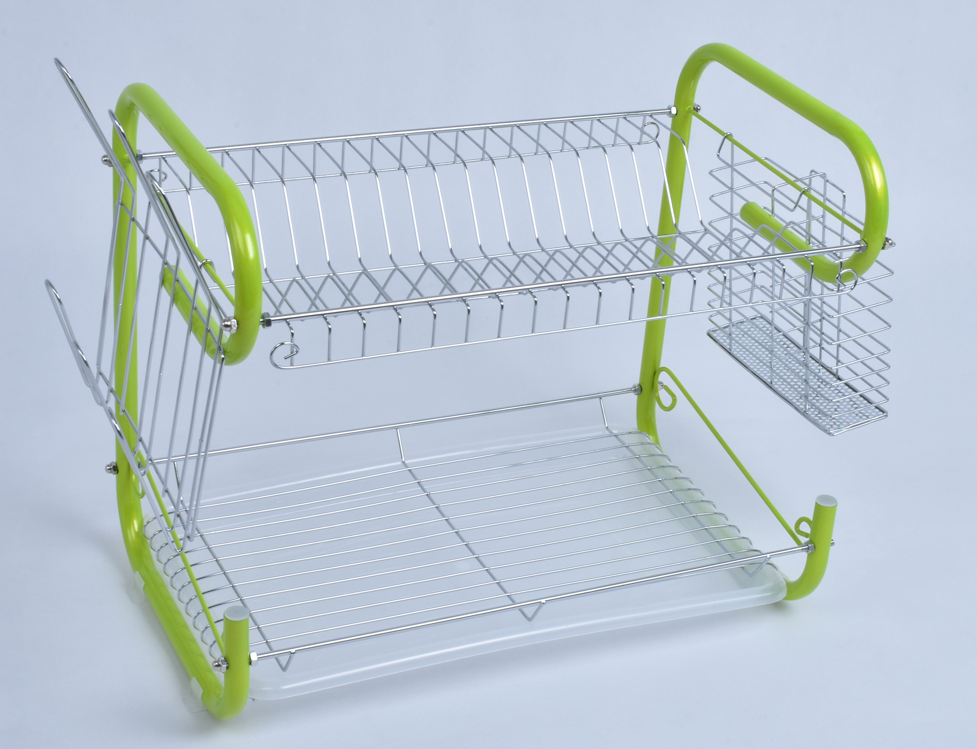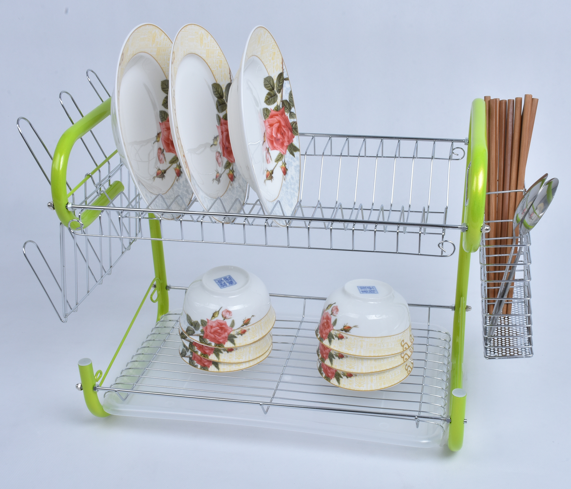 ชั้นสแตนเลสวางจานและคว่ำแก้วน้ำ 2 ชั้น ช่องเก็บช้อนส้อม พร้อมถาดรองหยดน้ำ คุณภาพดี แข็งแรงทนทาน ใช้งานยาวนาน - สีเขียว