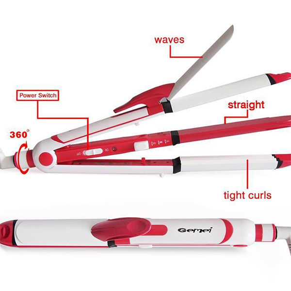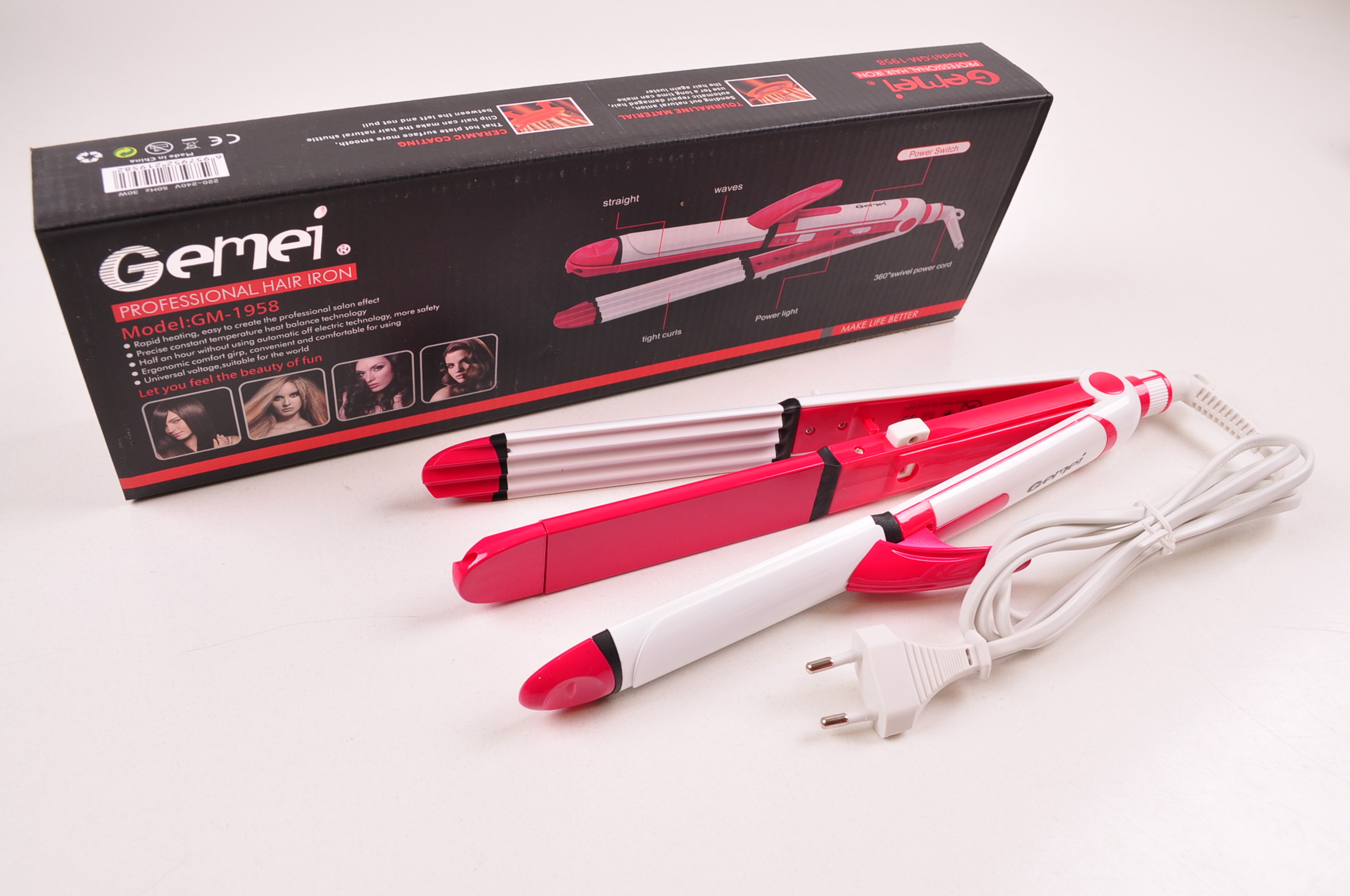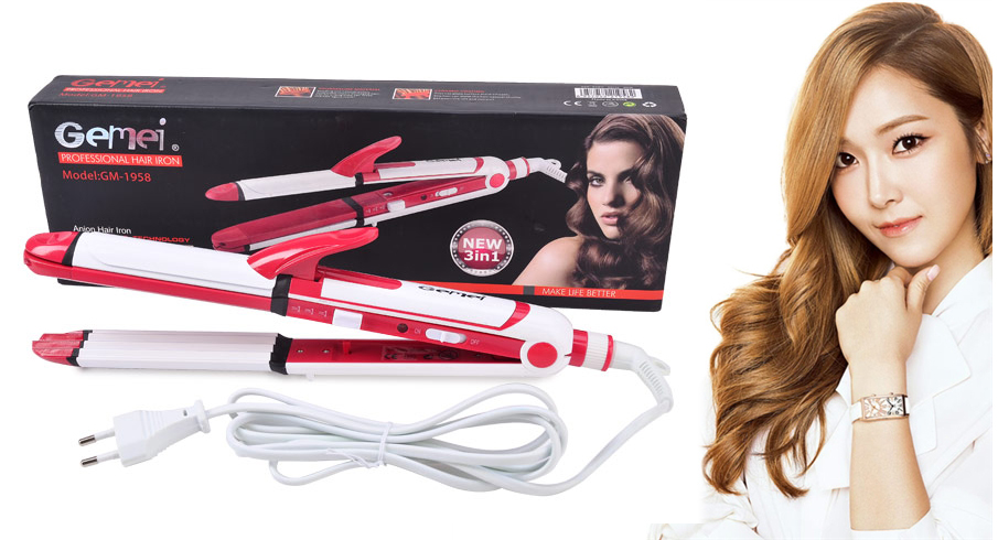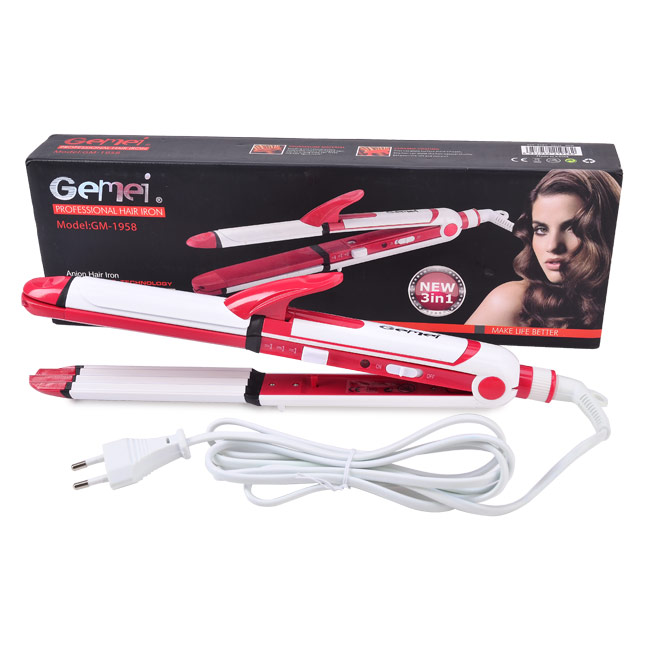 Gemei เครื่องหนีบผม 3 in 1 หนีบผมตรง หยัก และม้วน ปรับ 3 ระดับ ทัวร์มาลีนเซรามิก GM-1958 กำลังไฟฟ้า 30 วัตต์ ร้อนเร็ว 230C - สีชมพู