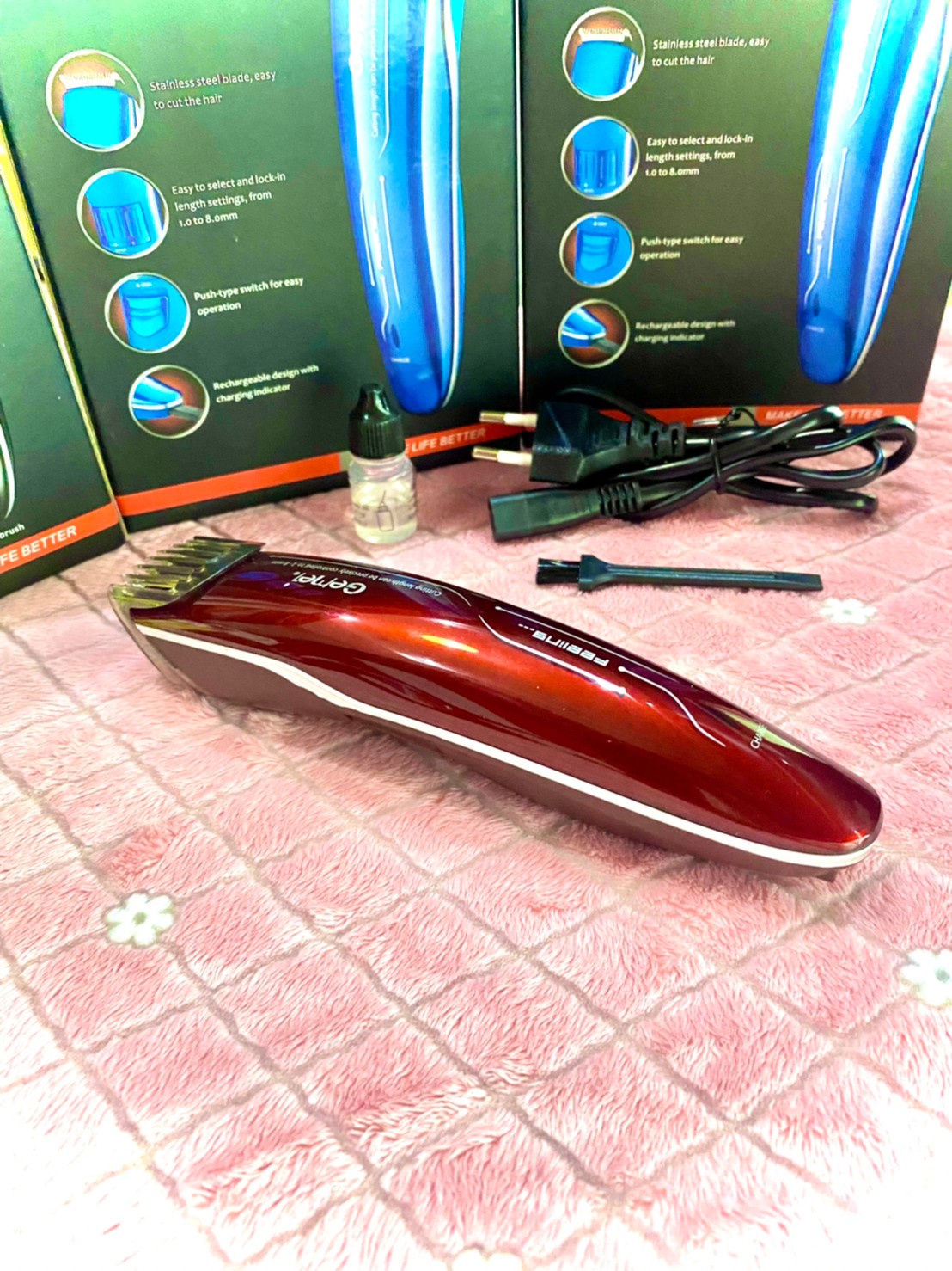 Gemei ปัตตาเลี่ยนตัดแต่งผมไร้สายแบบชาร์จ GM-756 ใบมีดสแตนเลส หมุนปรับระดับได้ 1-8 mm สั้น-ยาว ของเส้นผม ใช้งานได้ต่อเนื่อง 60 นาที – สีแดง