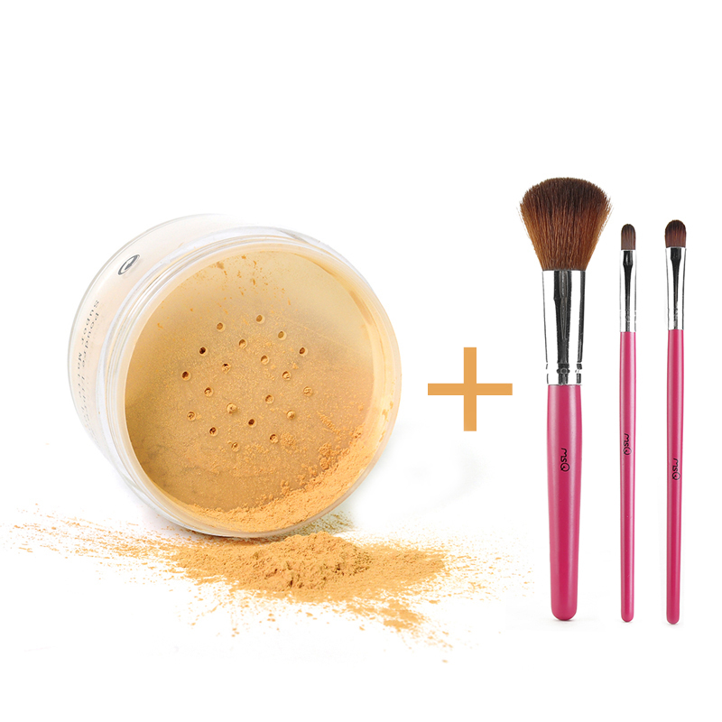 Lady Q ชุดแปรง 3 ชิ้นสำหรับตกแต่งใบหน้า ผลิตจากขนแพะดิบธรรมชาติที่ให้ความสามารถในการเก็บผง นุ่มและน่ารื่นรมย์สำหรับผิวของคุณ เหมาะสำหรับทุกสภาพผิว